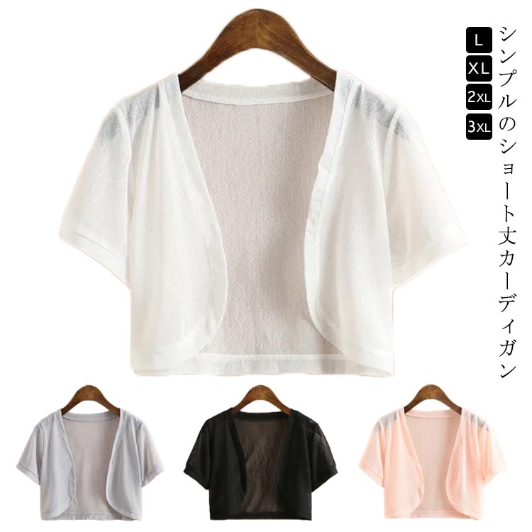 薄手 L~3XL ショート丈カーディガン 冷房対策 紫外線カット 着瘦せレディースファッション トップス カーディガン ボレロ