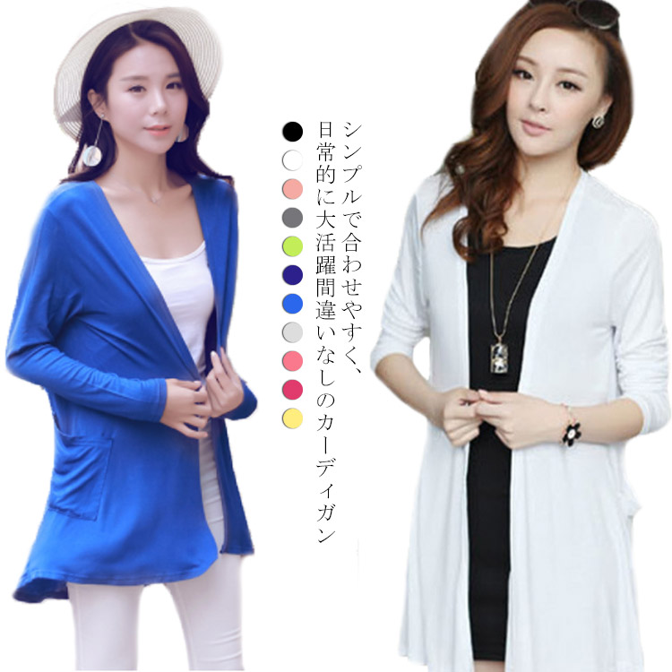 カーディガン レディース オープン ボタンなし 日焼け止め トップス リラックス 春夏 長袖 無地 シンプル 羽織り 着痩せ ゆったり 薄手 紫外線対策