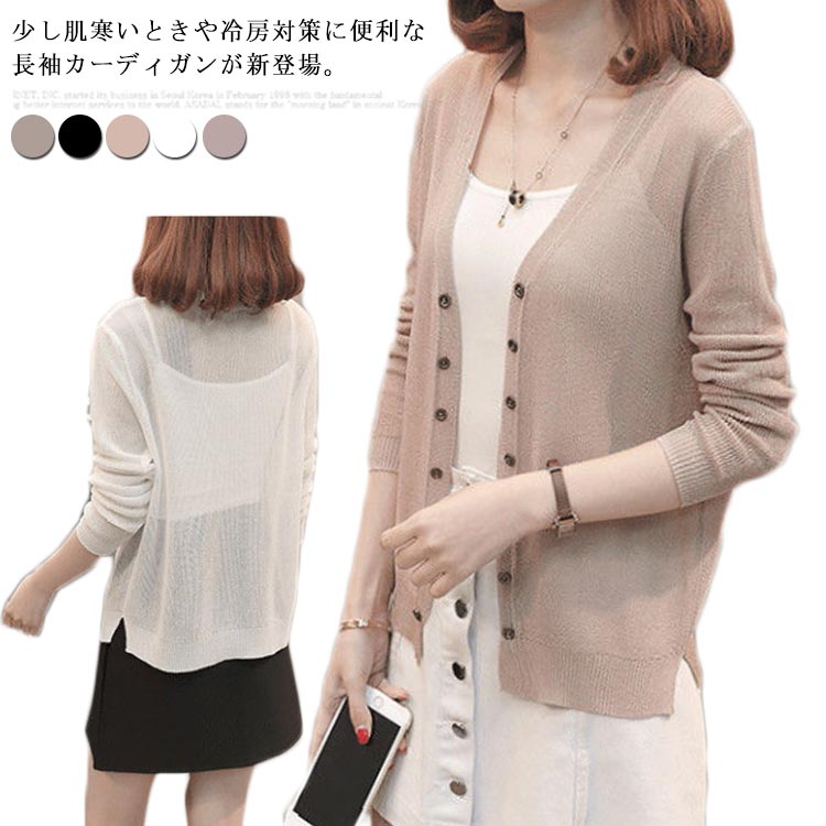 カーディガン レディース 長袖 シースルー 着痩せ 可愛い 冷房対策 春夏秋 きちんと お洒落 薄手 キレイめ カジュアル ゆったり