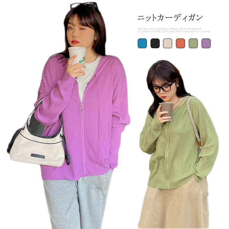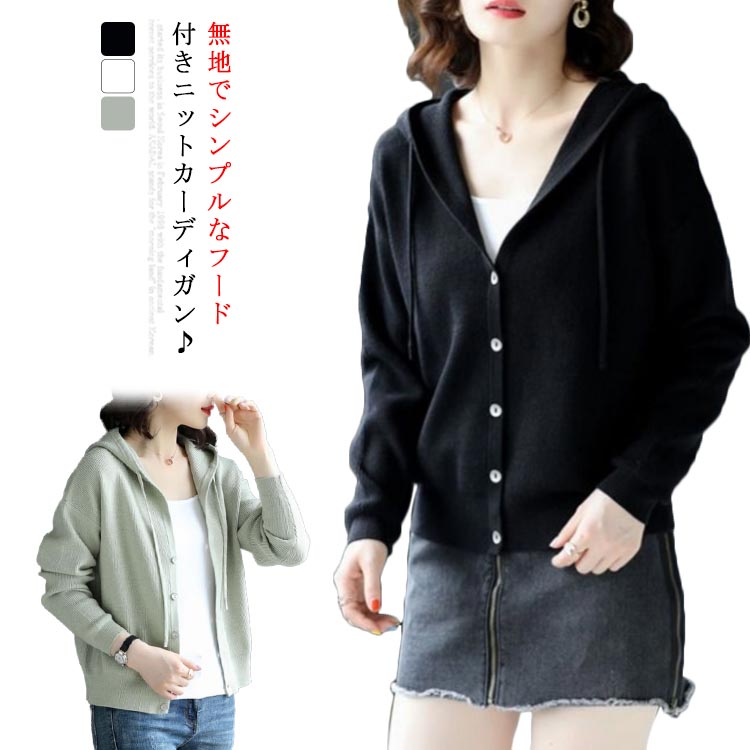 カーディガン レディース ニット セーター アウター 羽織り 無地 ゆったり カジュアル ストレッチ 大人 可愛い 春秋 おしゃれ フード付き ニット
