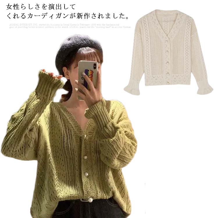 カーディガン レディース 薄手 長袖 透かし編み 羽織り 春秋服 ゆったり Vネック カジュアル 通勤 通学 コーデ お出かけ デート トップス アウター