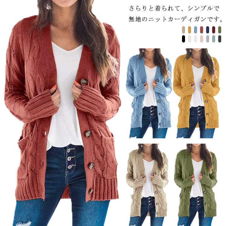 カーディガン ポケット付き 春秋 厚手 羽織り ネック ゆったり 体型カバー 前開き 通勤 通学 普段着 お洒落 リラックス お出かけ アウター カジュアル