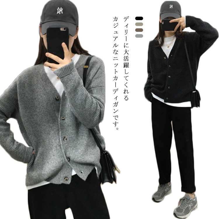 カーディガン 無地 春秋 ニットカーディガン 厚手 トップス Vネック ゆったり 体型カバー 前開き 通勤 通学 普段着 お洒落 羽織り