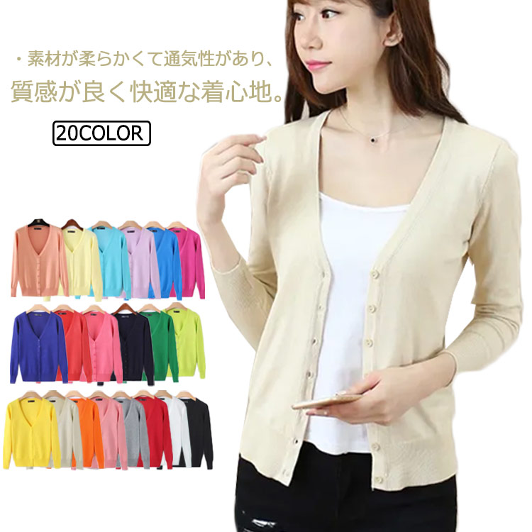 カーディガン ニットカーディガン 20色 レディース ショート 長袖カーディガン 無地カーディガン 羽織り オフィス コットン 春 秋 夏 春夏