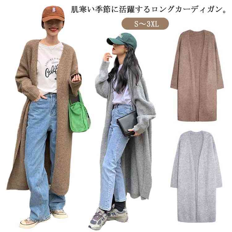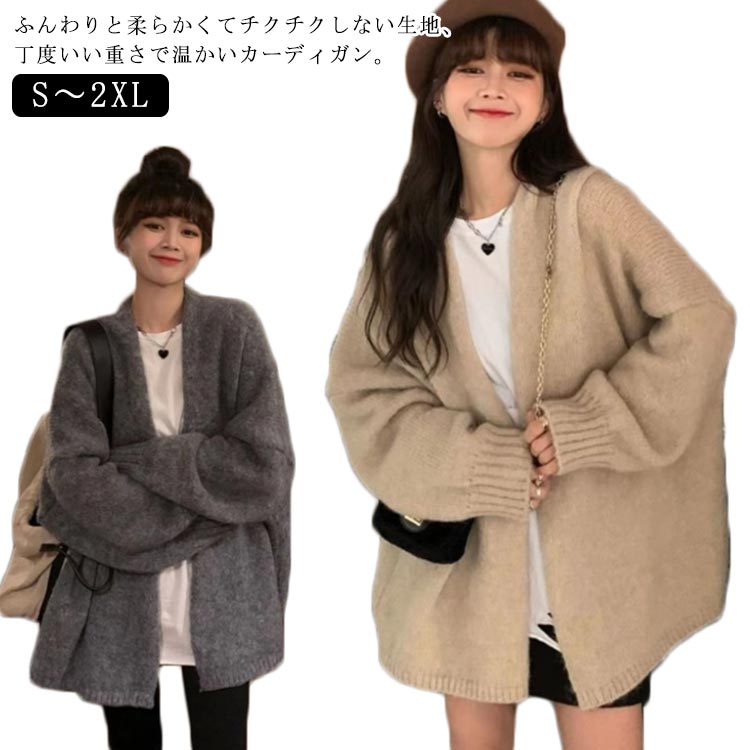 ニットカーディガン ゆったり レディース レディース カーディガン 秋冬 ニット 秋服 長袖 体型カバー ボリューム感 保温性 トレンド感 春 トレンド感