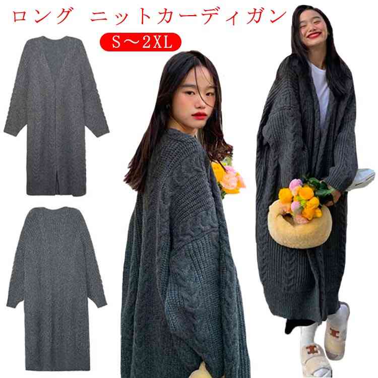 ロング カーディガン ゆったり ニット 可愛い 保温性 ポケット付き 暖かい ニットカーディガン ケーブルニット カーディガン 羽織り ロング