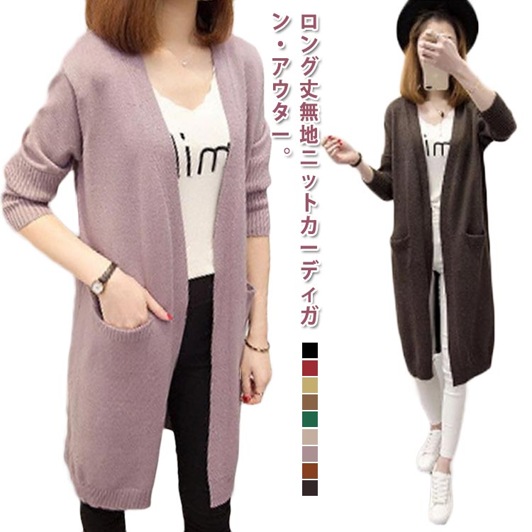 トップス セーター ポケット付き 無地 長袖 ゆったり ロングニットカーディガン 羽織り 体型カバー 可愛い ロングカーデ ロングコート 大人 カジュアル きれいめ ライトニット