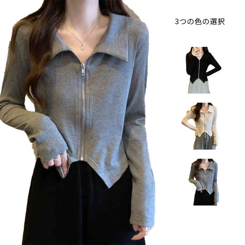 ショートカーディガン お洒落 折襟 ファスナー付き シンプル キレイめ カジュアル 無地レディースファッション トップス カーディガン ボレロ