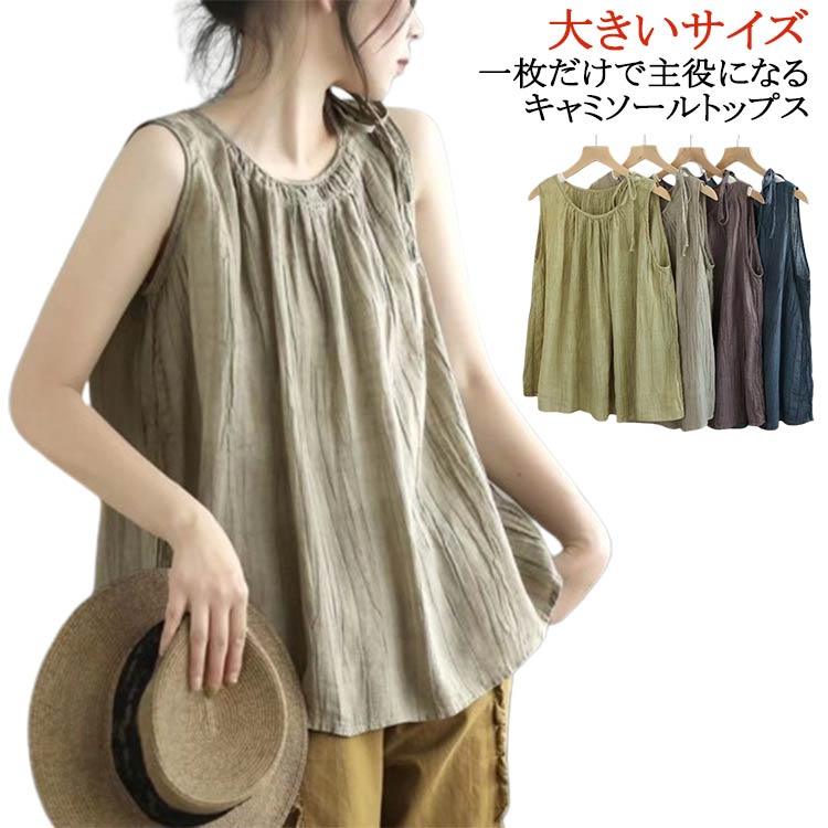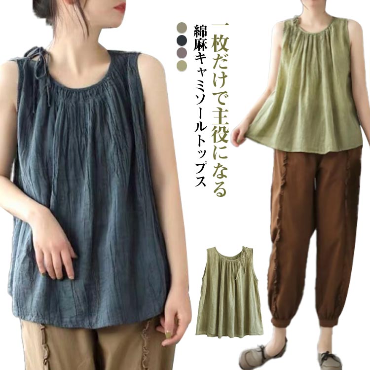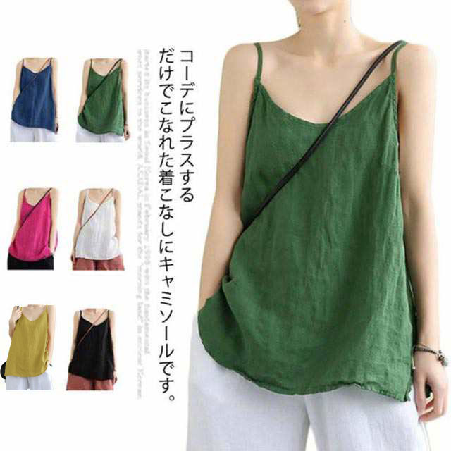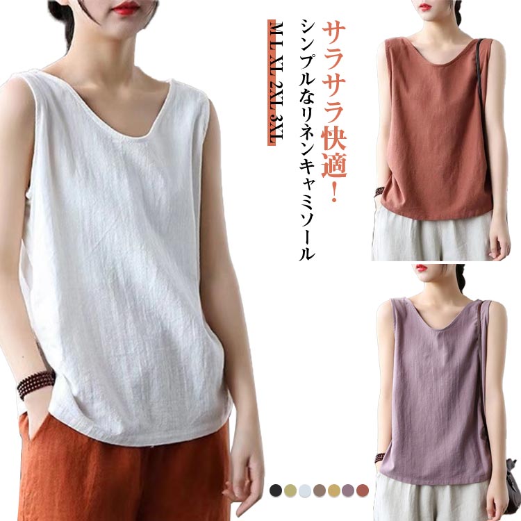 M~3XL キャミソール 綿麻 大人可愛い 部屋着 薄手 ナチュラル ゆったり 無地レディースファッション トップス キャミソール