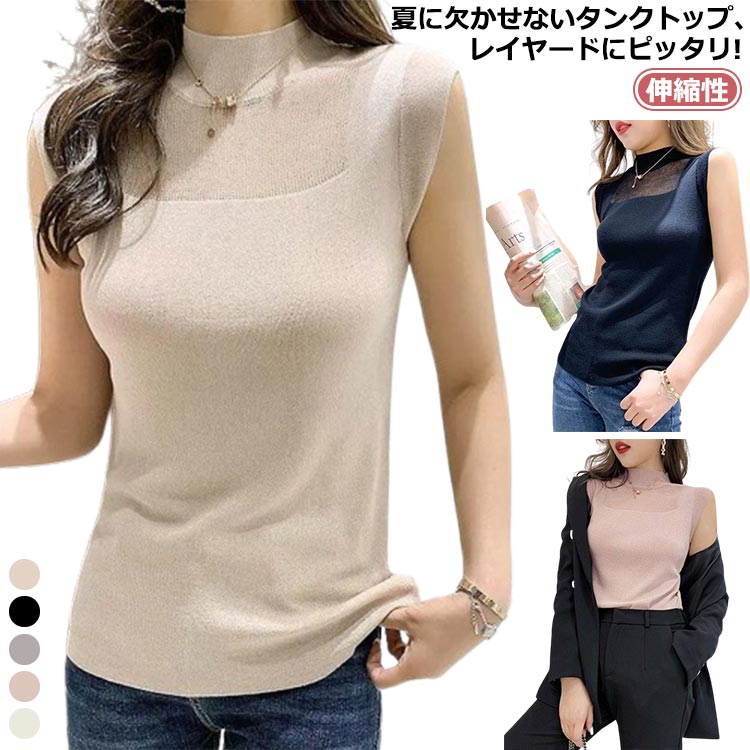 ハイネックタンクトップ ハイネックタンクトップ S~2XL 大人女性 きれいめ 重ね着 透け感レディースファッション トップス タンクトップ