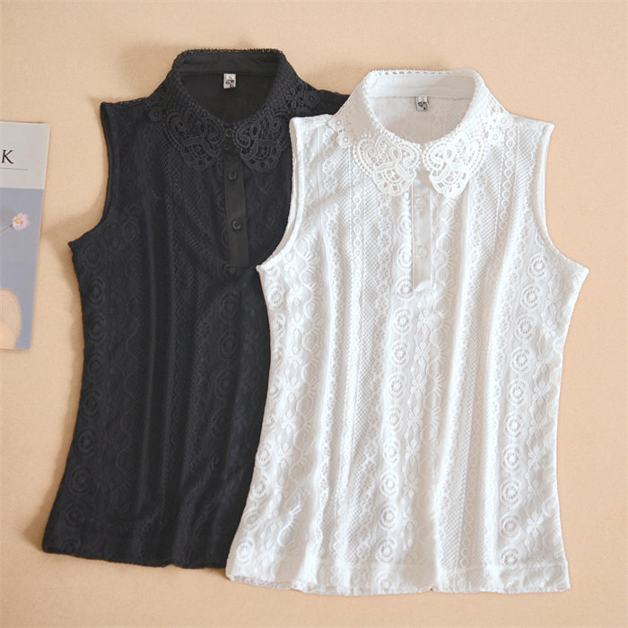 トップス タンクトップ タンク レディース カットソー インナー 肌着 襟付き レース ブラウス 春夏 薄手 袖なし カジュアル お出かけ レースタンク