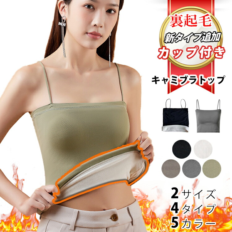 4タイプ パッド付き キャミソール 裏起毛 起毛なし カップ付き キャミソール 細めストラップ 美しく盛れる ストレッチ抜群 ブラトップ 一体型 春夏 秋冬