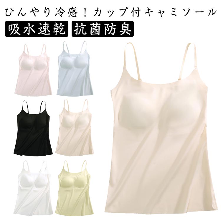 ひんやり 接触冷感 ブラトップ カップ付き ブラキャミソール 冷感 涼しい キャミ ノンワイヤー インナー 肌着 無縫製