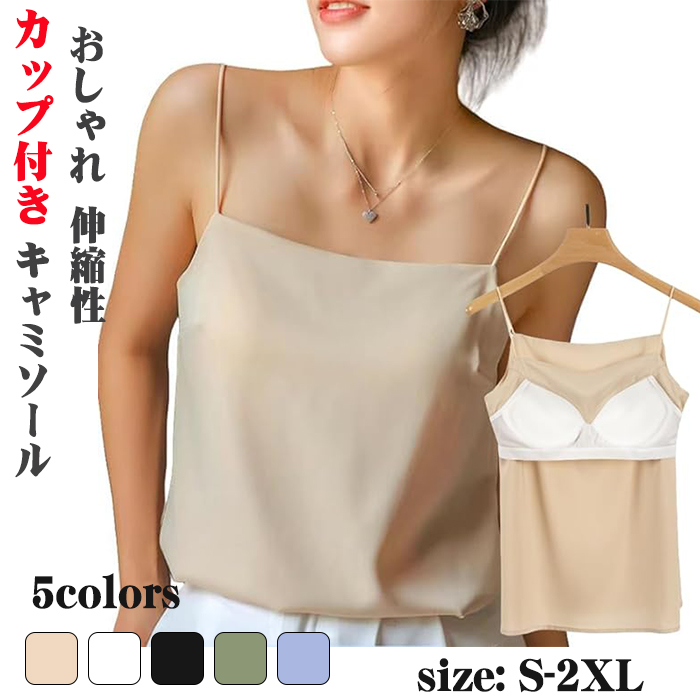 キャミソール カップ付き 見せる カップ付きシンプル 上品 人気 定番 おしゃれサテンキャミソール ブラ レディース 無地 夏服 インナー タンクトップ おしゃれ 下着 肌着 脇肉すっきり