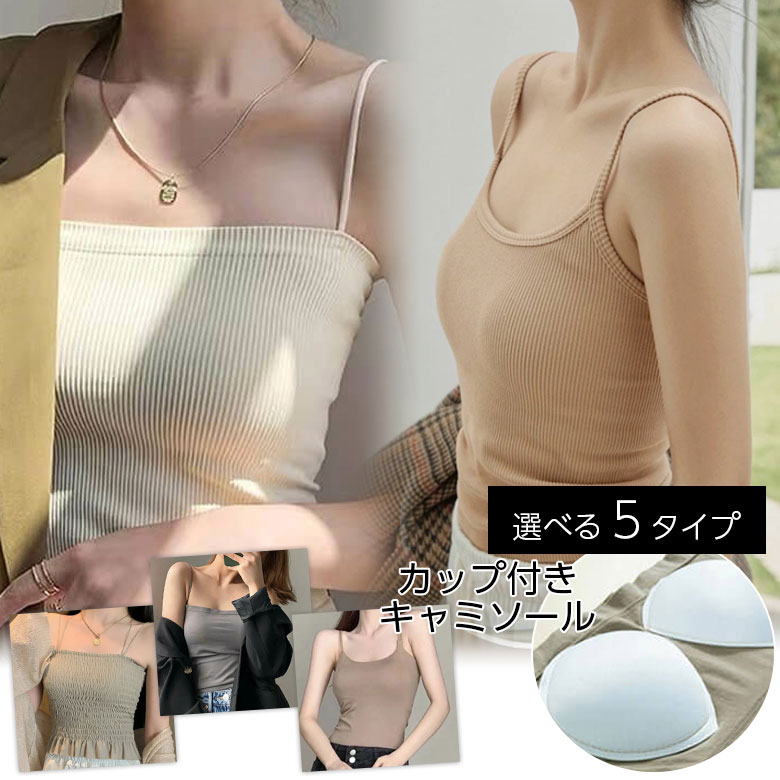 ショート丈カップ付きキャミソール2タイプ 着回し抜群 色違いで欲しいカップ付きインナー暑い夏にも快適な着心地