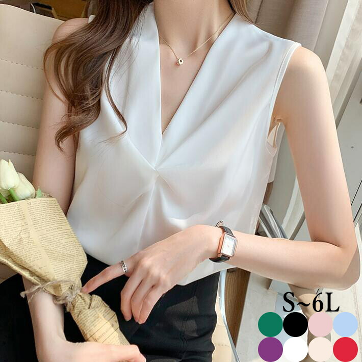 ブラウスレディース大きいサイズノースリーブタンクトップインナーVネック シフォントップス 着回し春夏SML2L3L