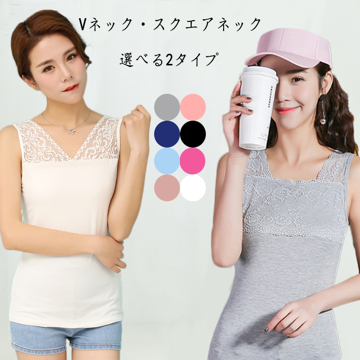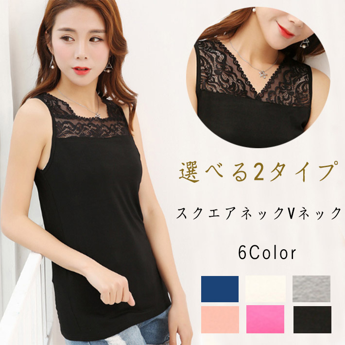 レースインナー 花柄 刺繍両面Vネックレースタンクトップレースキャミソール レーストップス Vネック スクエアネックレディース シンプル インナー袖なし ノースリーブ通年