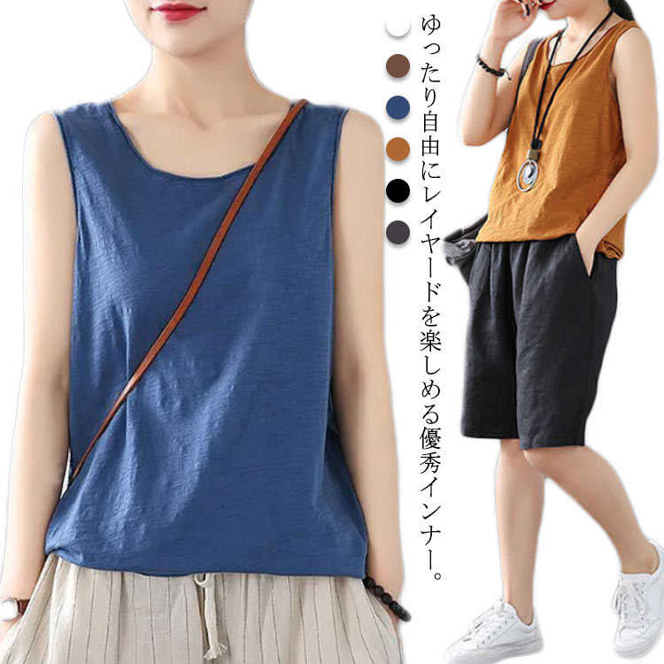 タンクトップ レディース 綿麻 トップス ノースリーブ コットンリネンレディースファッション トップス タンクトップ