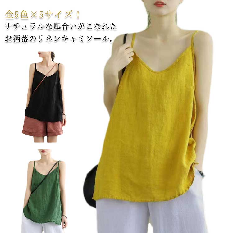 綿麻 キャミソール レディース トップス キャミ Vネック 重ね着 レイヤードレディースファッション トップス キャミソール