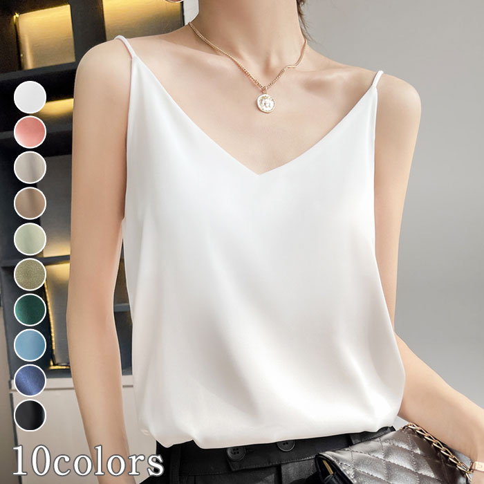 タンクトップ レディース インナー サテン Vネック Vネックレディースファッション トップス タンクトップ