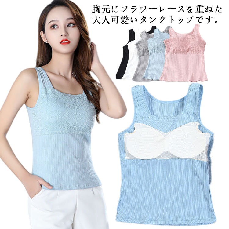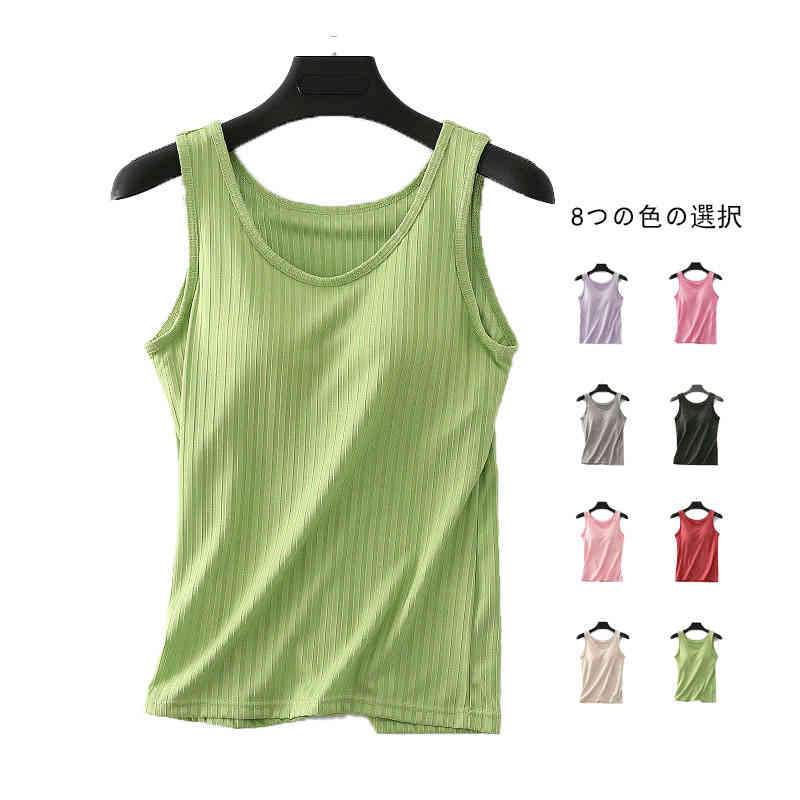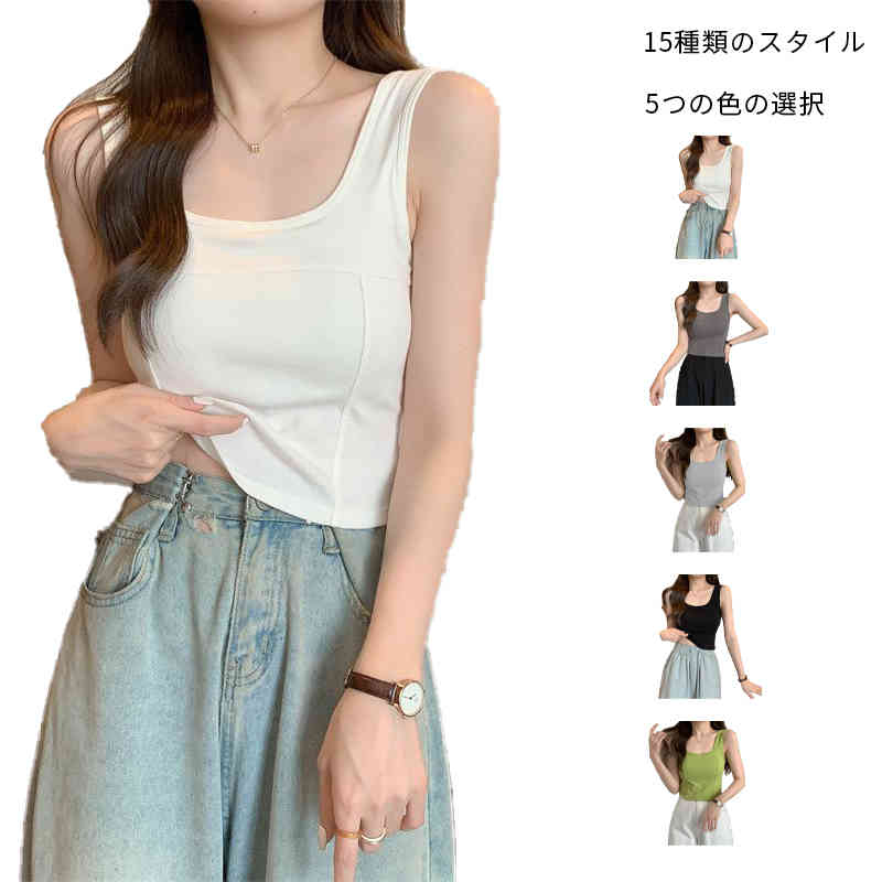 ノースリーブ 春夏秋 サマータンク ショート丈 レディース カップ付き タンクトップ インナータンクトップ