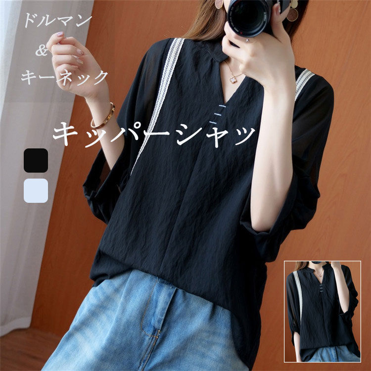シャツ ブラウス レディース トップス 夏 7分袖 スキッパー 大きいサイズ 涼しい きれいめ 二の腕カバー