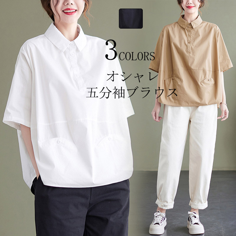 シャツブラウス 半袖 レディース ベーシック コットンシャツ 柔らかい 着心地よい かわいいレディースファッション トップス シャツ ブラウス
