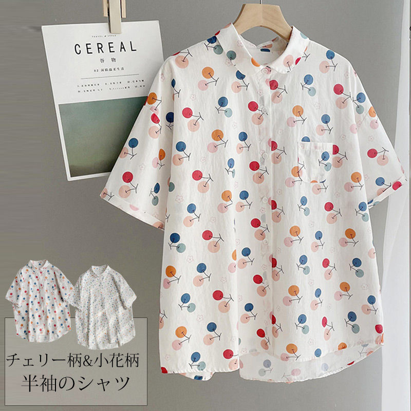 チュニック シャツ 半袖 前後差 襟付き レディース トップス 大きいサイズ 柄シャツ 花柄 おしゃれ きれいめ ブラウス 羽織り ゆったり