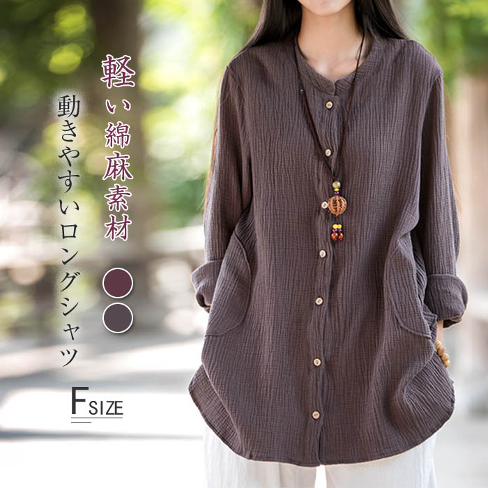 チュニック 綿麻シャツ 春 夏 涼しい 大きいサイズ 秋 着心地よい 前開き シンプルレディースファッション トップス シャツ ブラウス