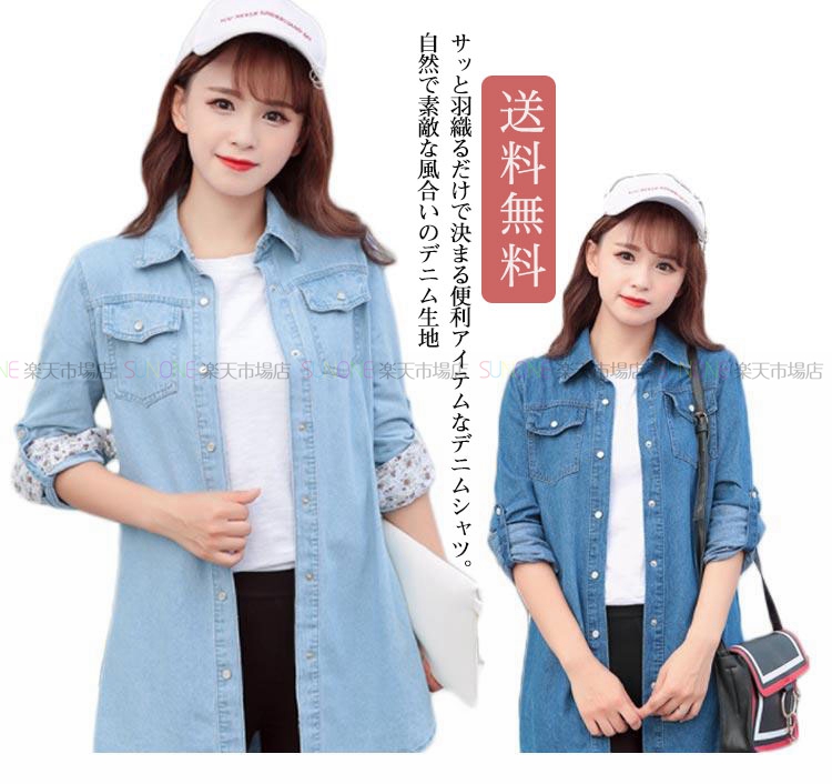 レディース ブラウス デニム ブラウス トップス 長袖 トップス シャツ ゆったり カジュアル レディース 春 夏 実用的 体形カバー レディース 春秋