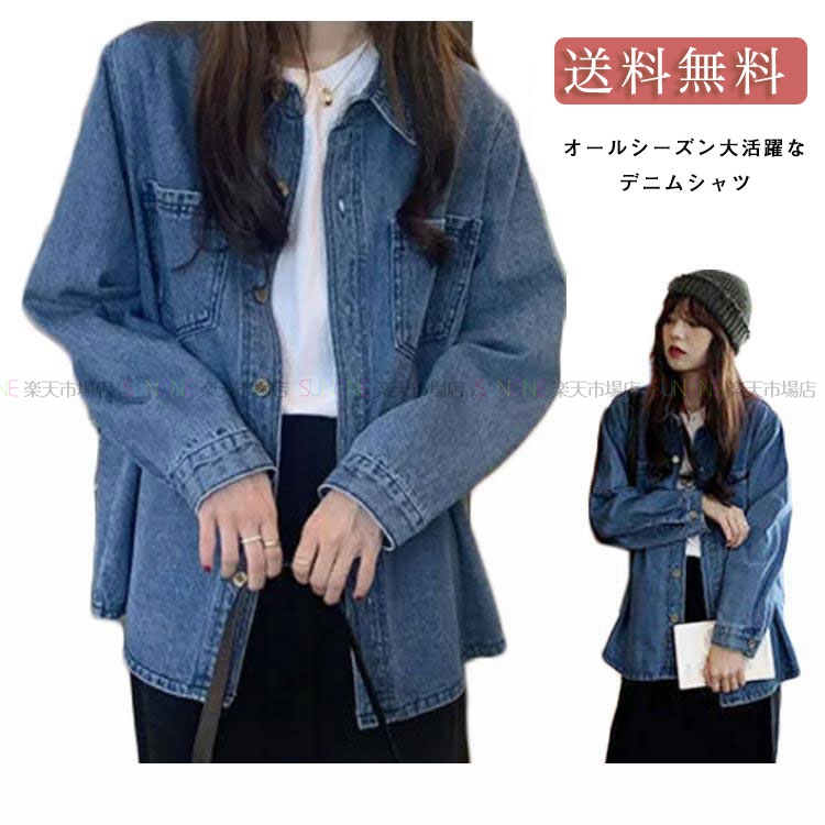 デニムシャツ レディース 長袖 トップス ブラウス ブルー 春 カジュアル シャツ おしゃれ 羽織り 長袖 無地 秋新作 秋服 春服 デニム 可愛い