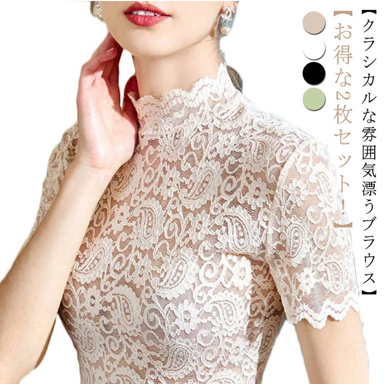 袖 レース ブラウス 半袖 ハイネック タートルネック トップス インナー 総レース ブラウスレディースファッション トップス シャツ ブラウス