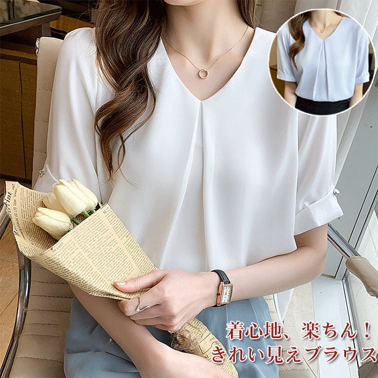 ブラウス 半袖 レディース オフィス tシャツ Vネック シフォンレディースファッション トップス シャツ ブラウス