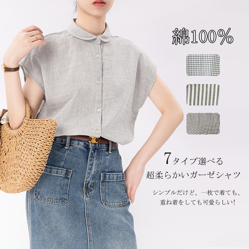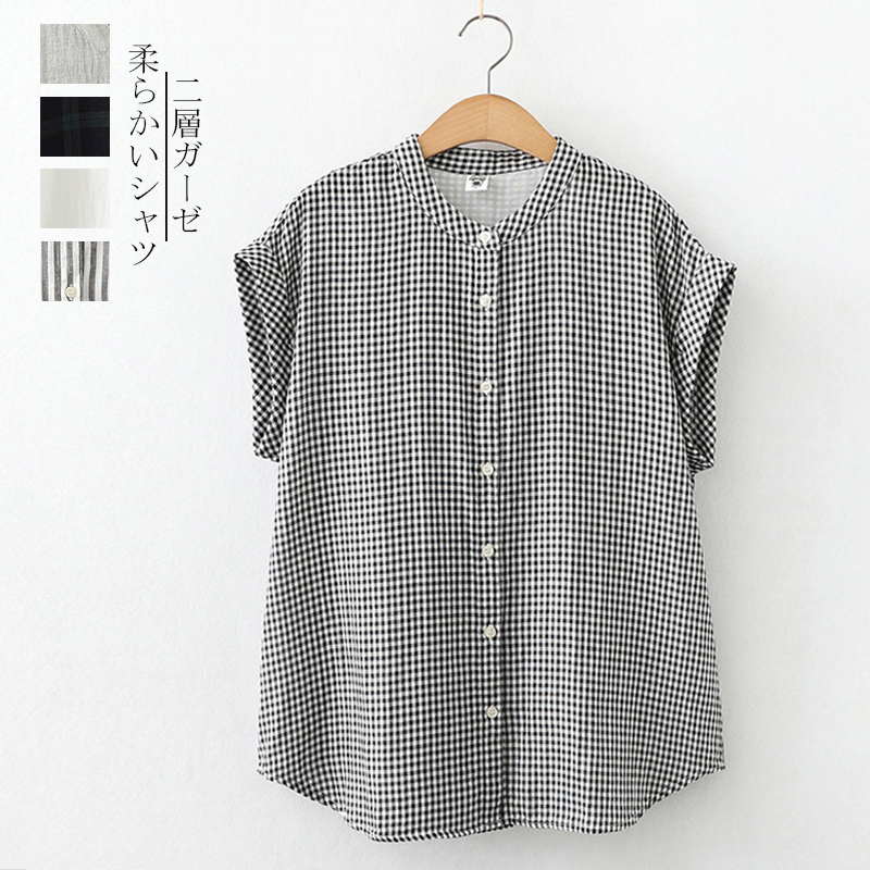 2枚で10%OFF半袖シャツ 綿100% 柔らかい お洒落 ゆるっとガーゼ材シャツ 通気性が良いので真夏も着こなせ