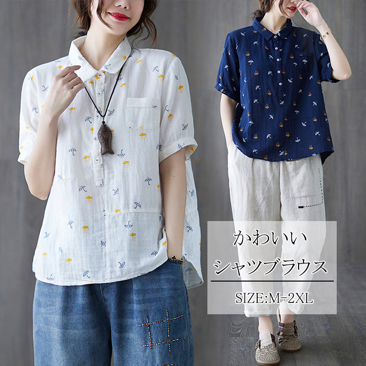 シャツ トップス ブラウス 半袖 夏 シャツブラウス 大きいサイズ 柄 ゆったり カジュアル レディース 春 お洒落 きれいめ 通勤 通学 かわいい 通気性よい 柔らかい カジュアル 部屋着 ルームウ