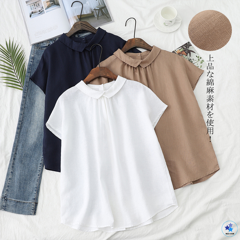 2枚で10% リネンシャツ デザイン 後ろボタン 可愛い 涼しい 綿麻 リネン ブラウス かわいい 大きいサイズ