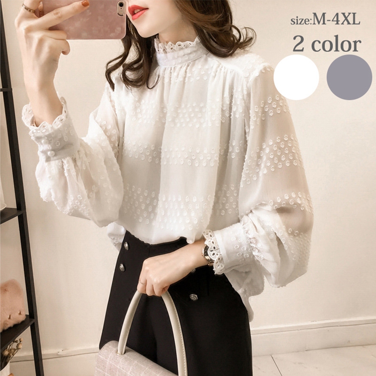 とろみシャツ 長袖 秋シャツ ハイネック シフォン 大人可愛い 大きいサイズ ブラウス レディース おしゃれ トップス ゆったり 通勤 20代 30代 40代