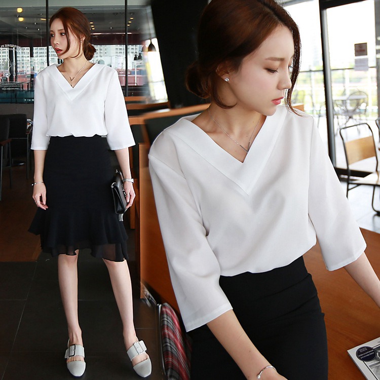 シャツ レディース 七分袖 シフォンシャツ トップス Vネック ブラウス フォーマル 涼しい 無地 レディース トップス サマーシャツ ゆったり 着痩せ おしゃれ オフィス カジュアル