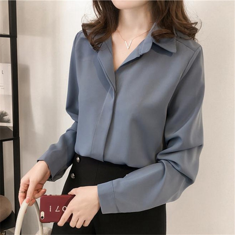 ブラウス レディース シャツ 長袖 襟付き シフォン 無地 フォーマル カジュアル オシャレ上着 女性用 トップス ゆったり 大きいサイズ 着痩せ ファッション お出かけ 通勤