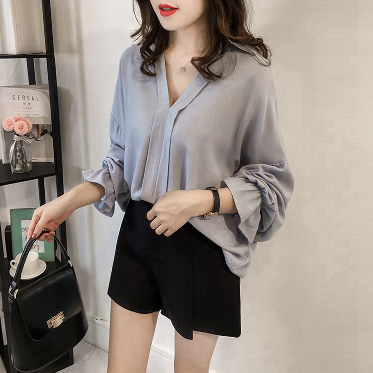 シフォンシャツ トップス 長袖 ブラウス シャツ レディース ベルスリーブ 無地 カット カジュアル ゆったり 体型カバー 通勤 秋 20代30代40代