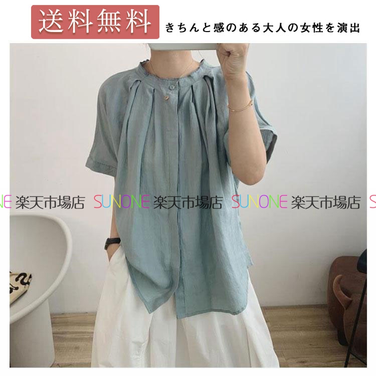 シャツ ブラウス シャツブラウス レディース ガーゼ チェック柄シャツ 夏 丸襟 シャツ 無地 ガーゼ シンプル 綿 半袖 コットン 通気