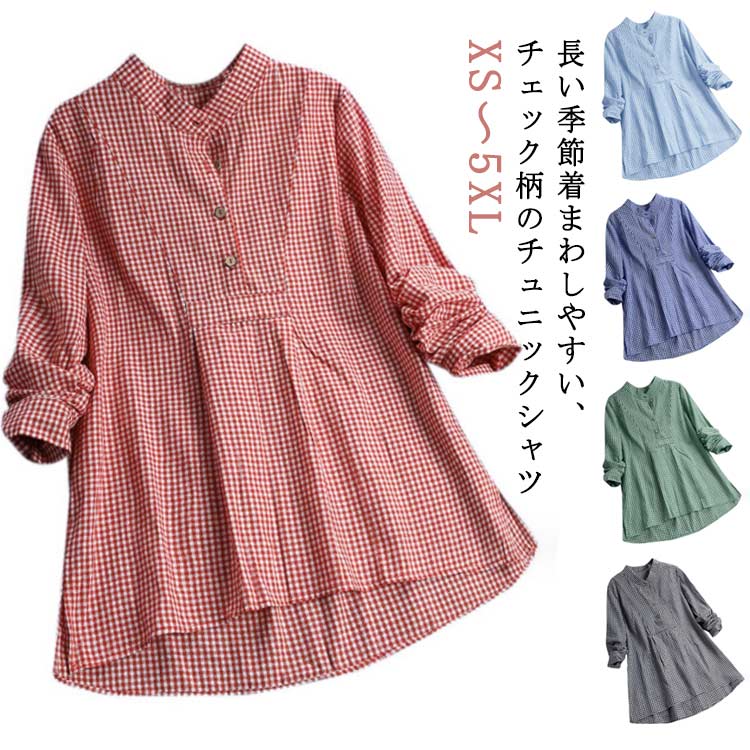 XS~5XL ロングシャツ 可愛い 長袖 体型カバー きれいめ チェック柄レディースファッション トップス シャツ ブラウス