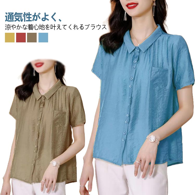 半袖 半袖 シャツブラウス ナチュラル 大人女性 可愛い 体型カバー ~4レディースファッション トップス シャツ ブラウス