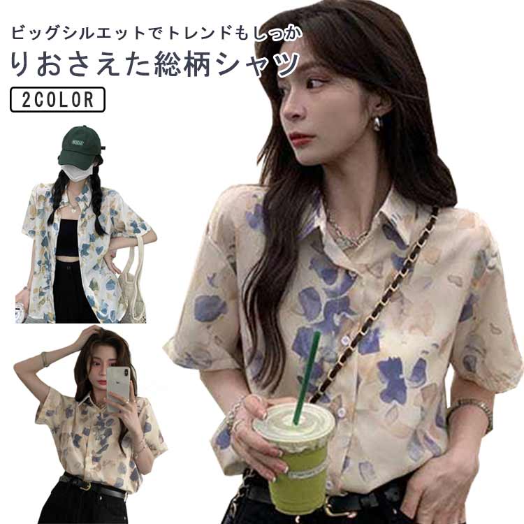 S~2XL 半袖 総柄シャツ 半袖 涼しい 羽織 体型カバー 薄手レディースファッション トップス シャツ ブラウス