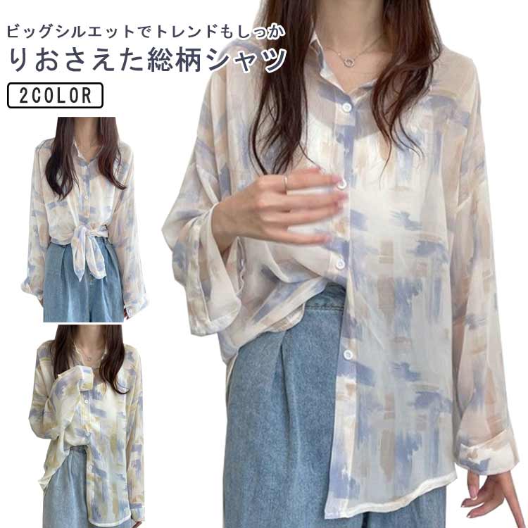 ~2 半袖 総柄シャツ 半袖 涼しい 羽織 体型カバー 薄手レディースファッション トップス シャツ ブラウス