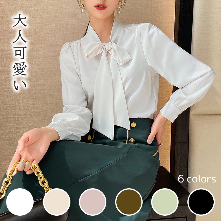 ブラウス ボウタイ リボン ゆったり レディース シャツ フリル パフスリーブ 上品 通勤 オフィス 仕事 デート お出かけ 長袖 春 秋 デザイン 大人コーデ カジュアル オフィスカジュアル 通学