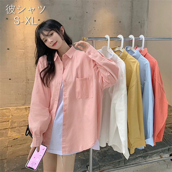 レディースシャツ レディース服 トップス 3color 春向け 着やせ 女性 シャツ 大きいサイズ ピンク 長袖 フリーサイズ 女の子 女 かわいい