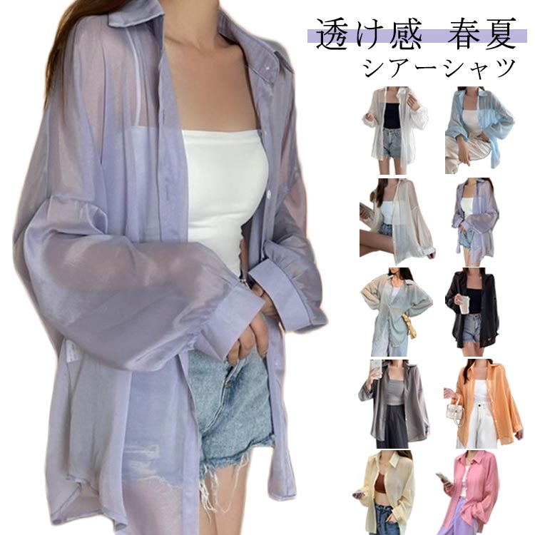 シアー シャツ ノーカラー レディース きれいめ 透け感 とろみシャツ サマー カーディガン ブラウス