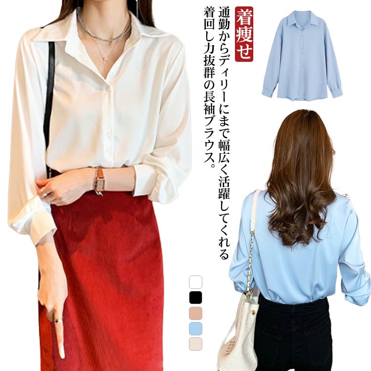 とろみシャツ ゆったり レディース 長袖 カジュアルシャツ 無地 きれいめ ブラウスレディースファッション トップス シャツ ブラウス