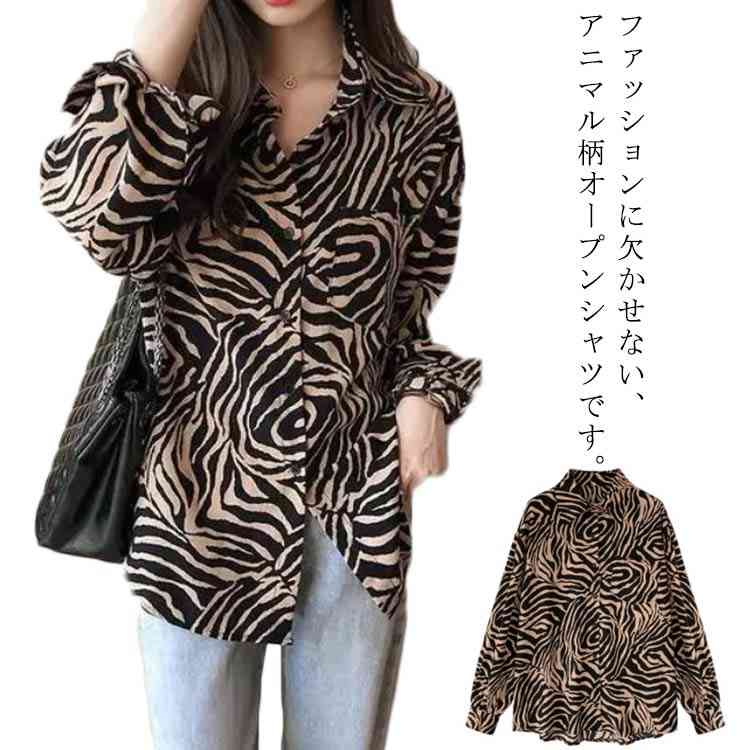 ゼブラ柄シャツ 襟付き 長袖 レディース 大人 キレイめ カジュアル 30代 40代レディースファッション トップス シャツ ブラウス